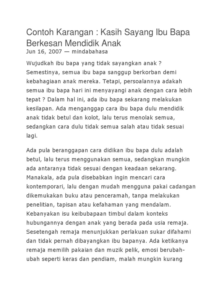 Contoh Karangan Kasih Sayang Ibu Bapa Pdf